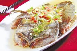 梧棲鎮向來以海鮮著名,因此阿嬤的招牌手路菜也多數以海鮮為主,例如御品原汁魚翅丸就是梧棲老店最受歡迎的料理之一。「先將上好旗魚肉打成魚漿,再加上新鮮散翅、鮮蝦、花枝、香菇攪拌而成。」當年阿嬤用手工拍打魚漿,因此魚翅丸口感Q脆,搭配蛤蜊、筍片熬煮的湯頭,至今喝來依舊甘鮮清爽,風味迷人。