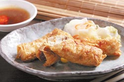 有著金黃色外衣的招牌豆腐卷,乍看之下很像雞卷,外酥內軟,在臭豆腐的餘韻裡,隱約有點甘甜味。「我先將臭豆腐打散,混入洋蔥和玉米後,再用黃豆皮捲緊,下鍋酥炸,利用玉米和洋蔥本身的甜,豐富整體的滋味。」老闆娘承認,招牌豆腐卷是從雞卷變化而來的,沒想到推出後大受歡迎,成為店中當紅的招牌。